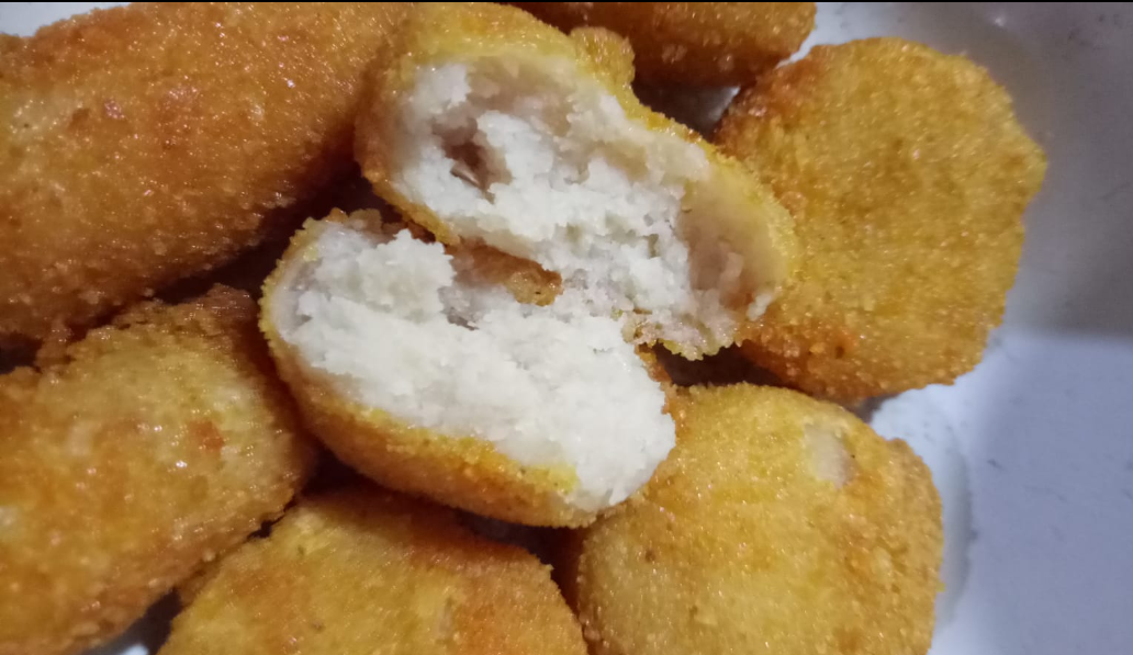 Komposisi : Ayam, bawang putih, kentang, tepung roti, garam, penyedap, pati singkong, tepur, maizena, tepung panir. Isi 10pcs/bks